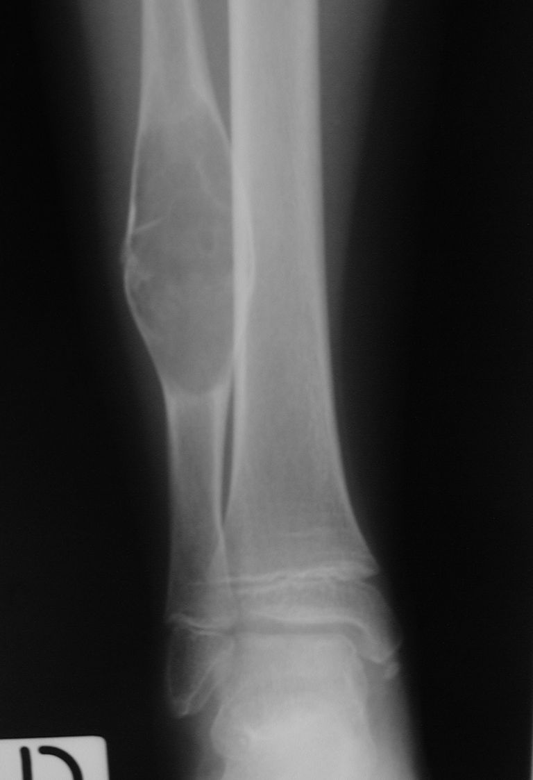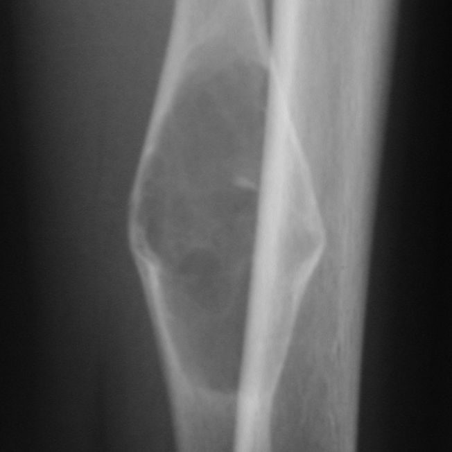 In questi casi ci troviamo di fronte a una frattura patologica su cisti ossee; anche in questi casi il reperto è occasionale dopo un trauma minimo accidentale. Possono riscontrarsi in varie parti del corpo, normalmente a carico delle ossa lunghe quali omero ( immagine a lato) oppure in sede peroneale ( caso in basso ).